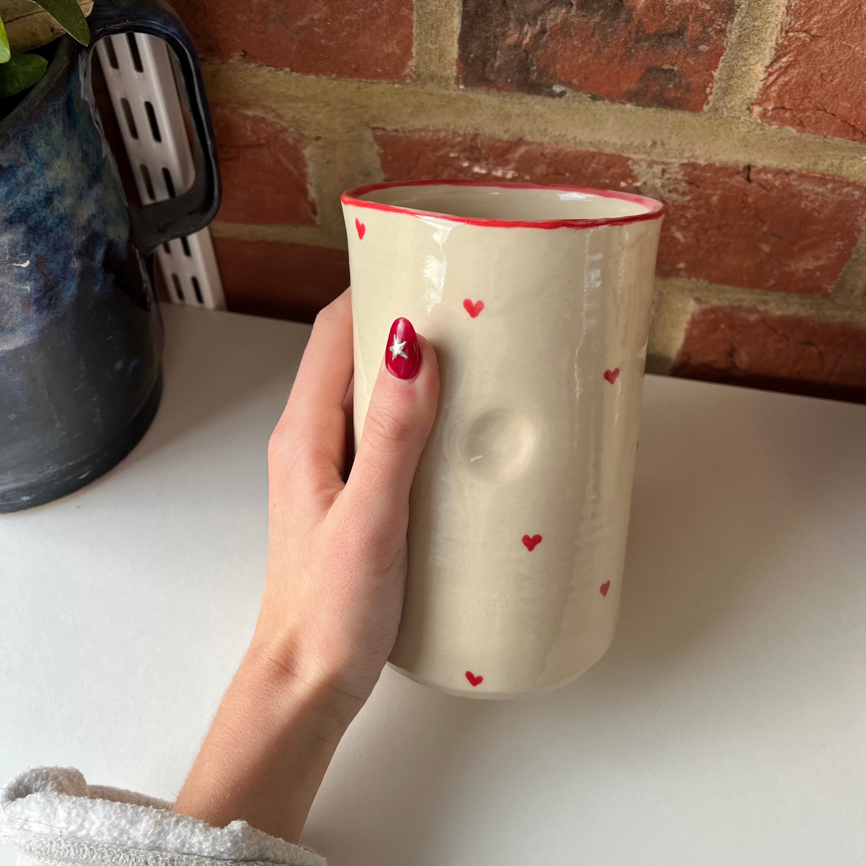 Each creation tells a story — shaped by hand, glazed with intention, and inspired by the beauty of the natural world. From the soft curves of our ceramic mugs to the intricate detailing of our mouth-painted vases, every piece reflects care, craftsmanship, and character. Whether you're searching for a statement mug that adds joy to your morning ritual or a unique vase that holds meaning, our small-batch designs are made to be cherished, collected, and loved for years to come.