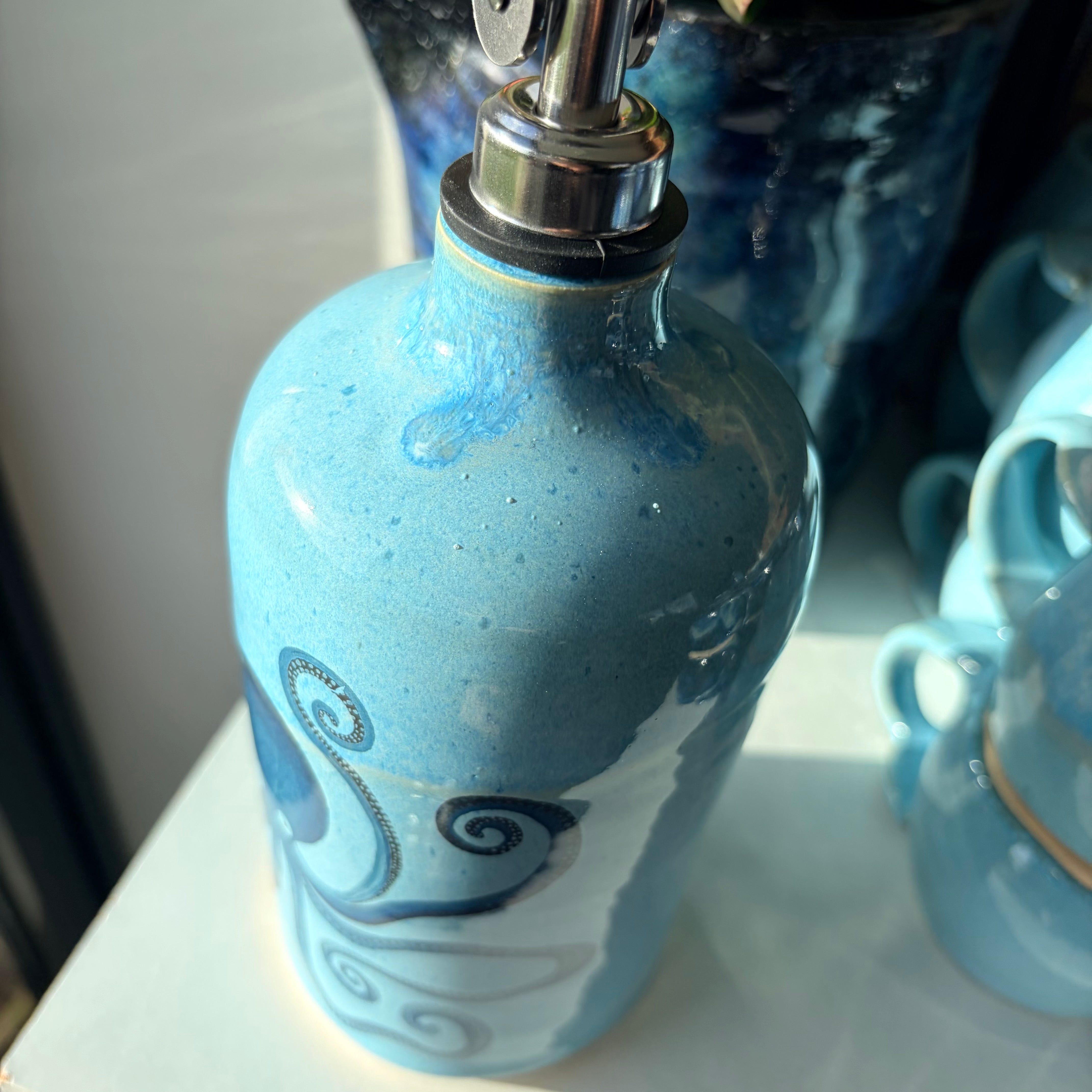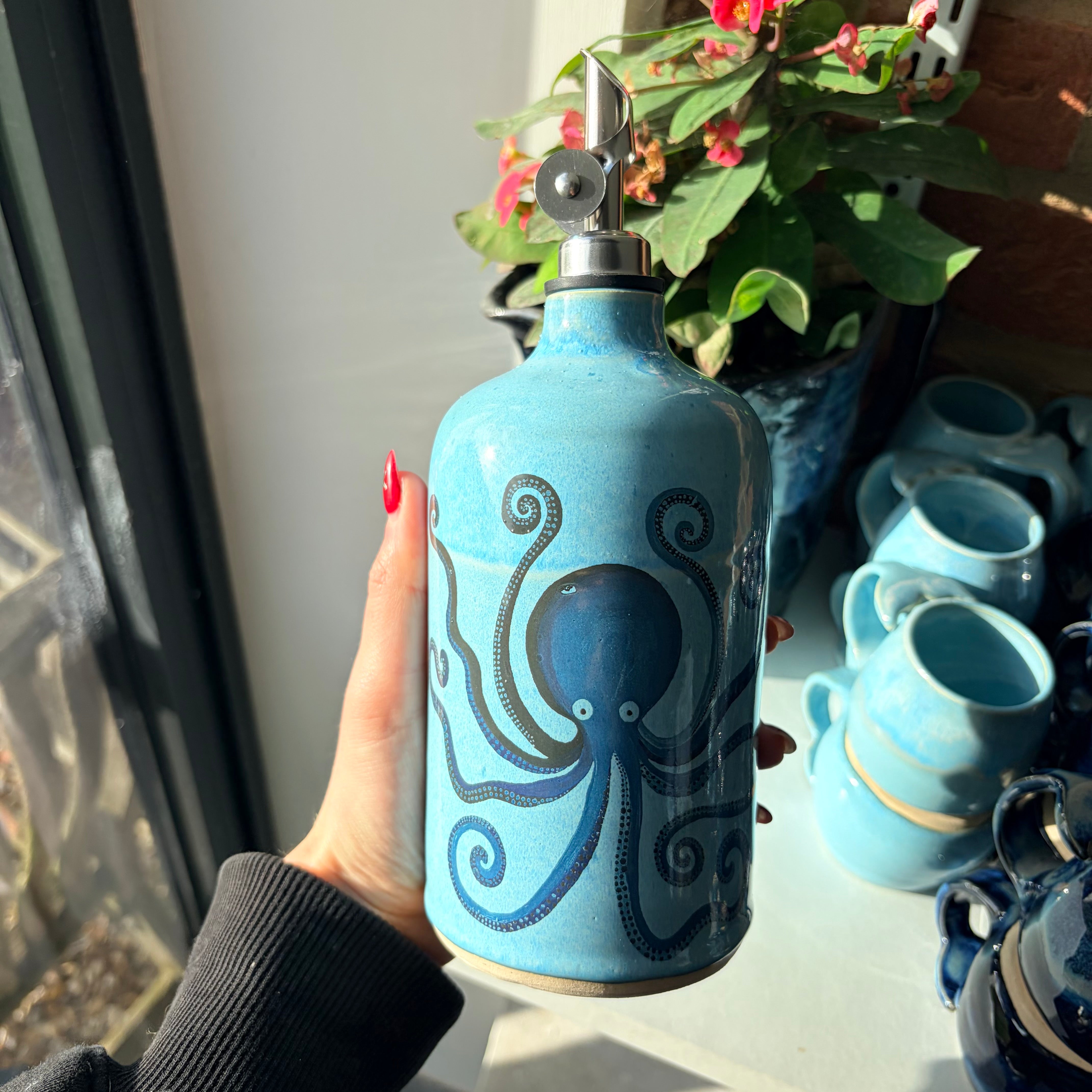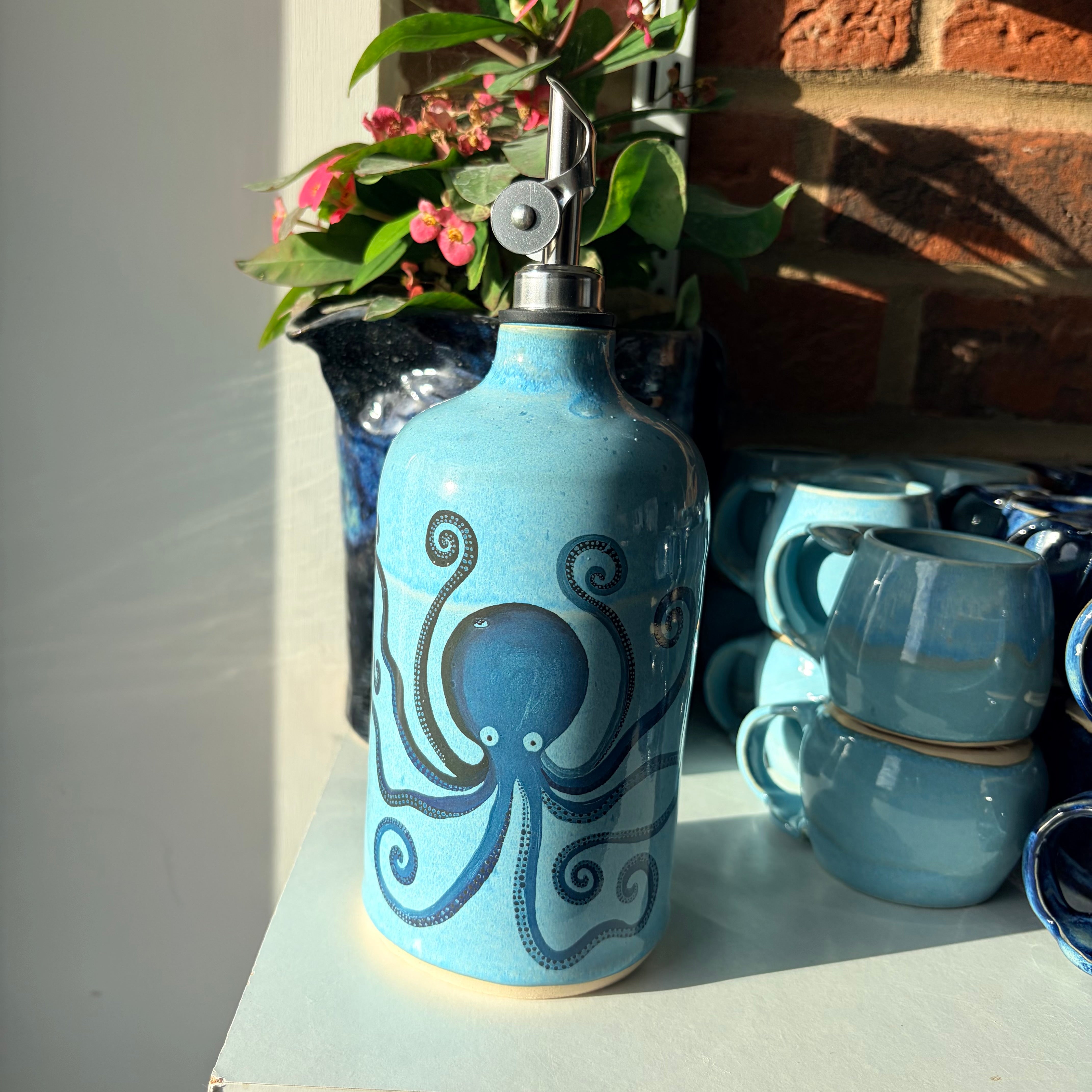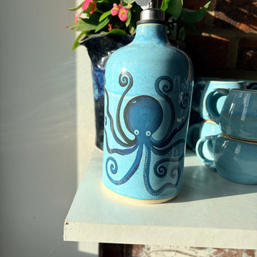 * Thrown on the wheel by Olivia, and a decal of Emily’s mouth painted octopus has been made and transferred onto the vessel.