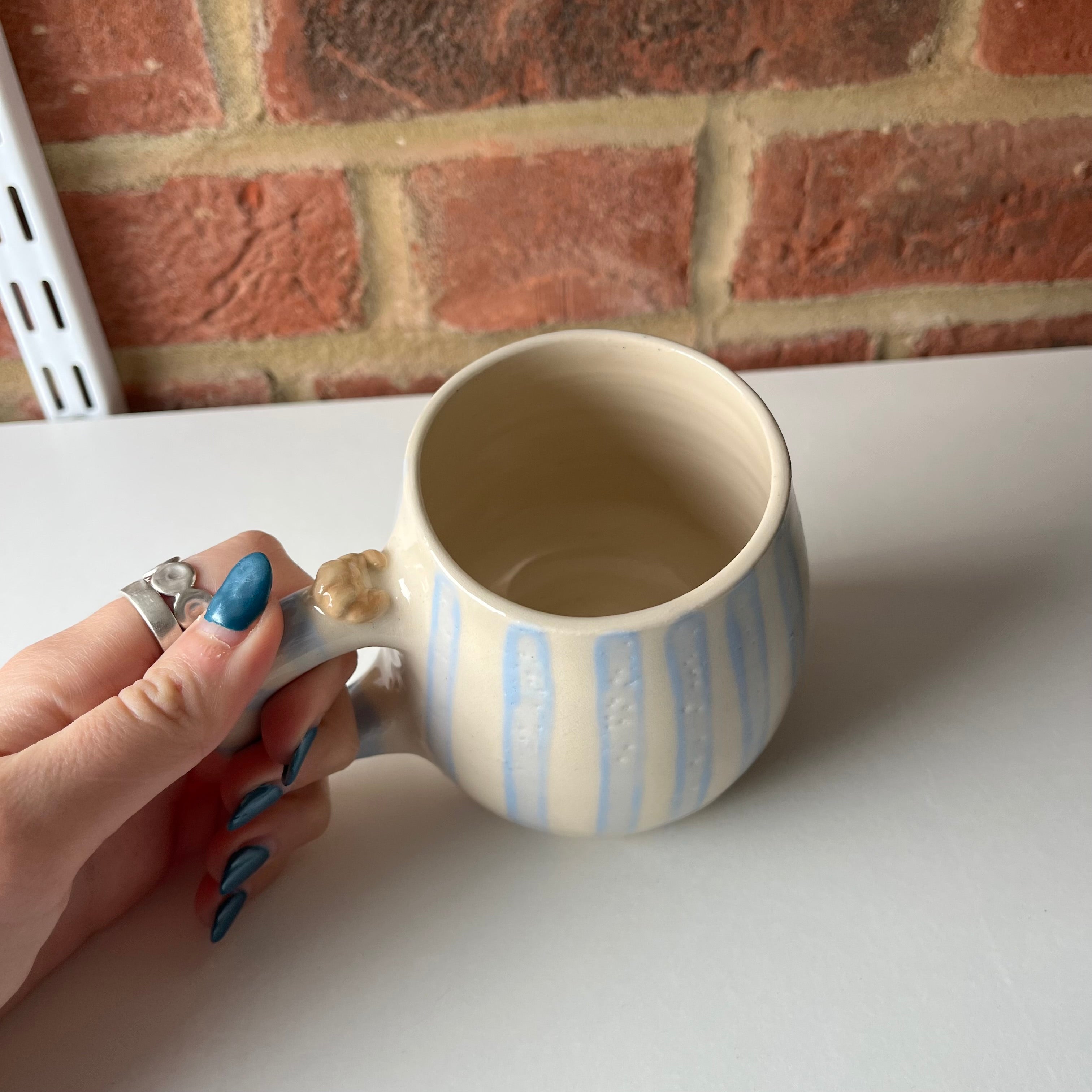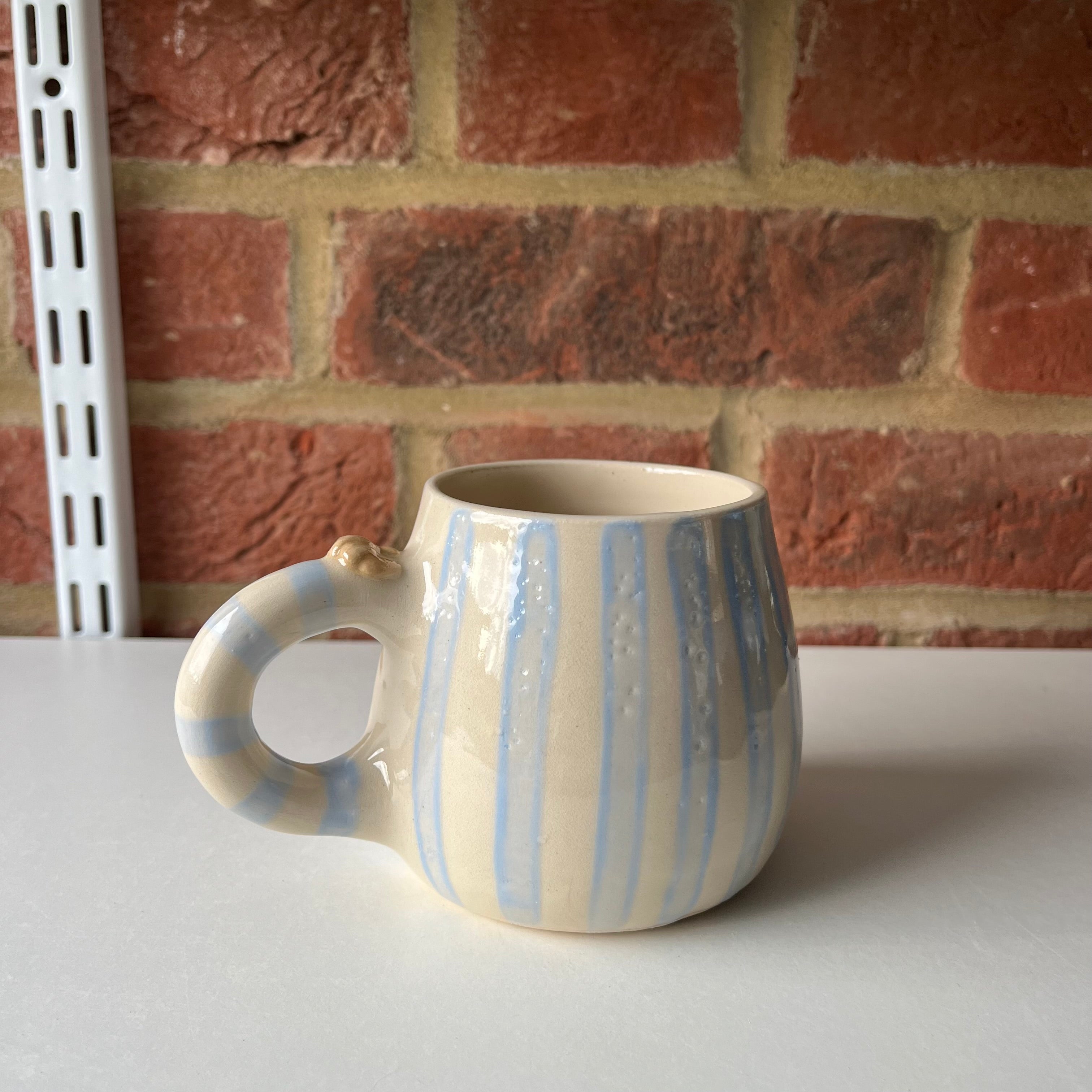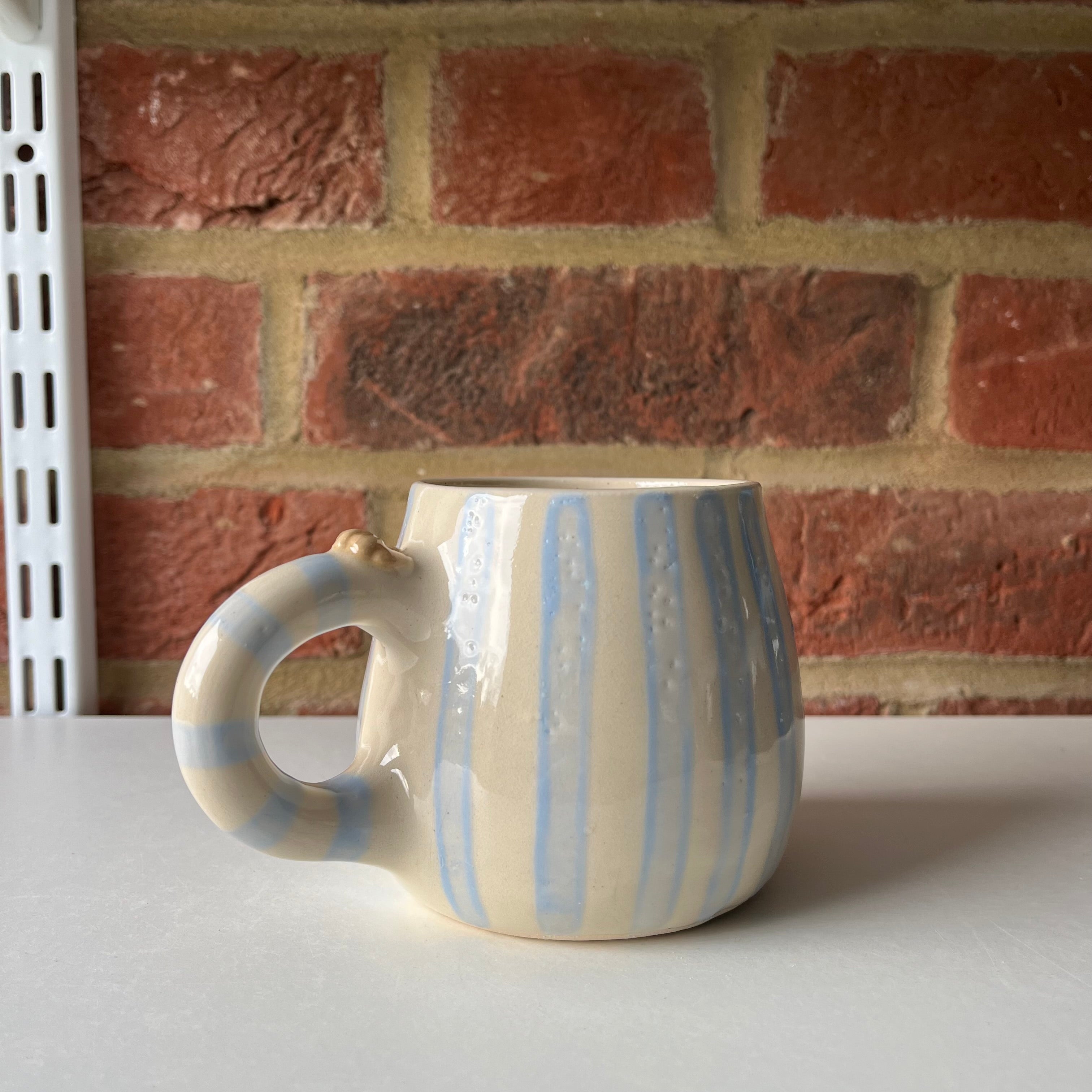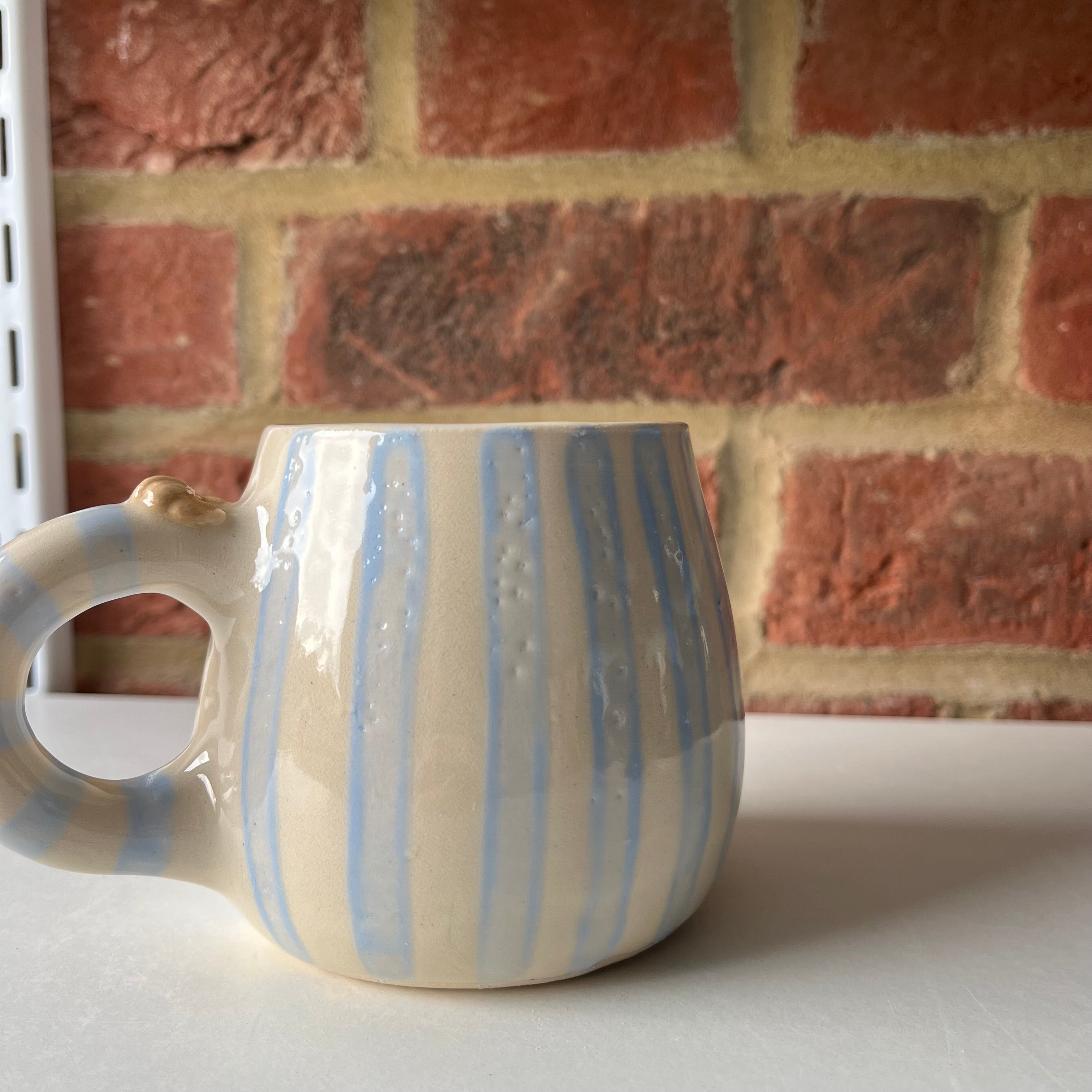 ** this batch of blue stripes didn’t like the glaze so much and so there is a big imperfection on the stripes  - please check the photos to see what this could look like !